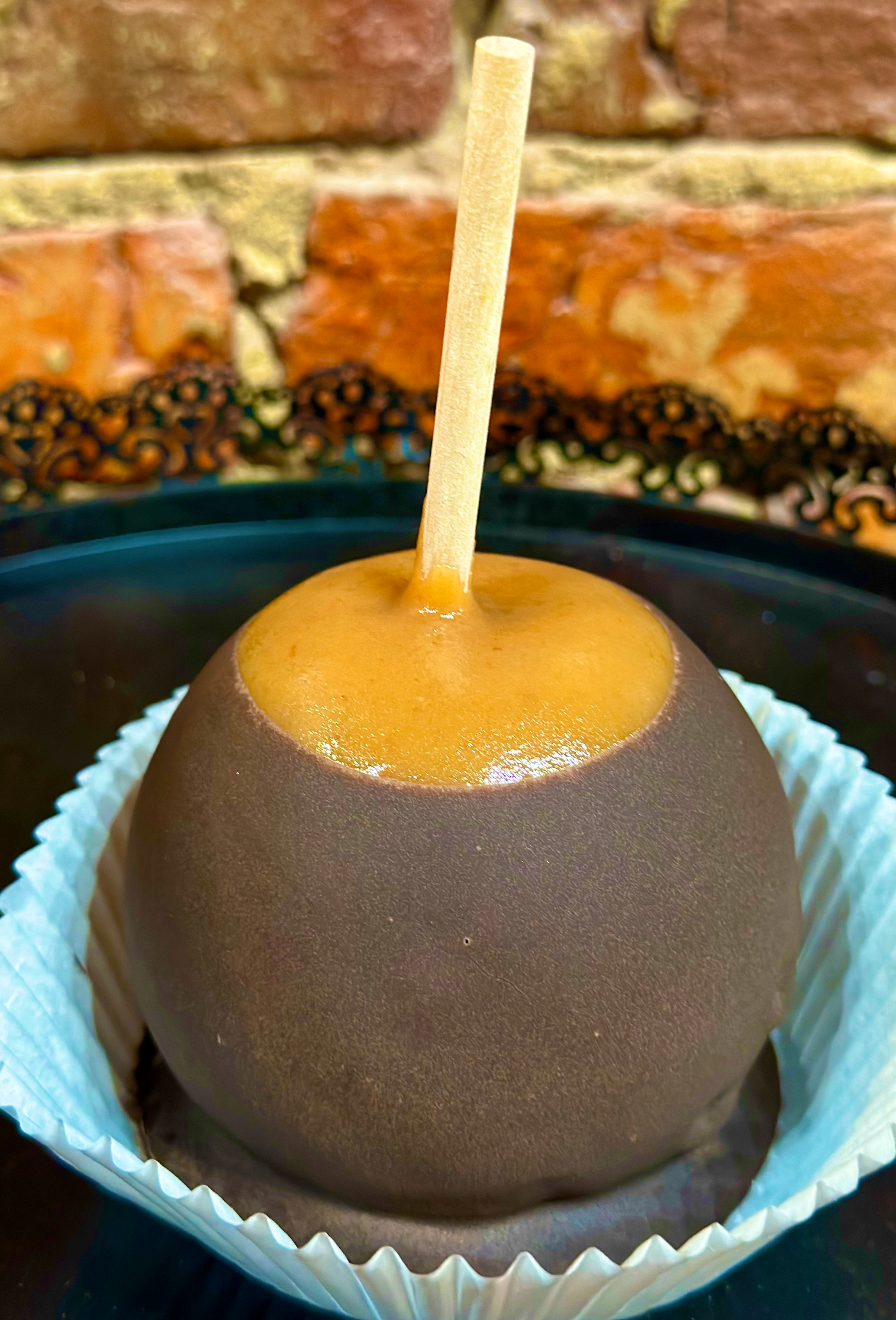 Large crisp granny smith apple dipped in our signature, made from scratch copper pot caramel, then dipped in dark chocolate.